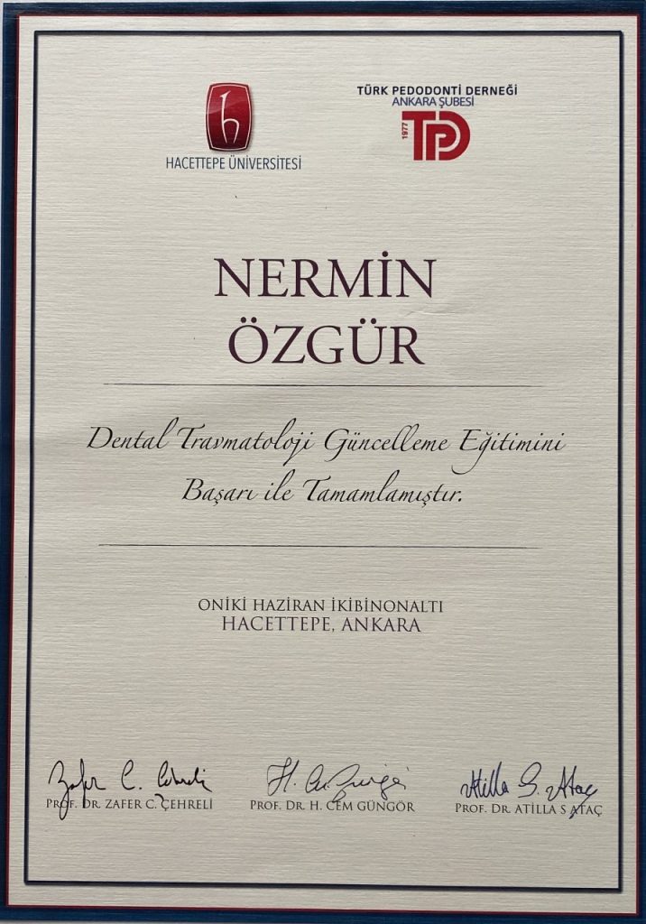 • 2019 – Hacettepe Üniversitesi Çocuk Diş Hekimliği Ana Bilim Dalı