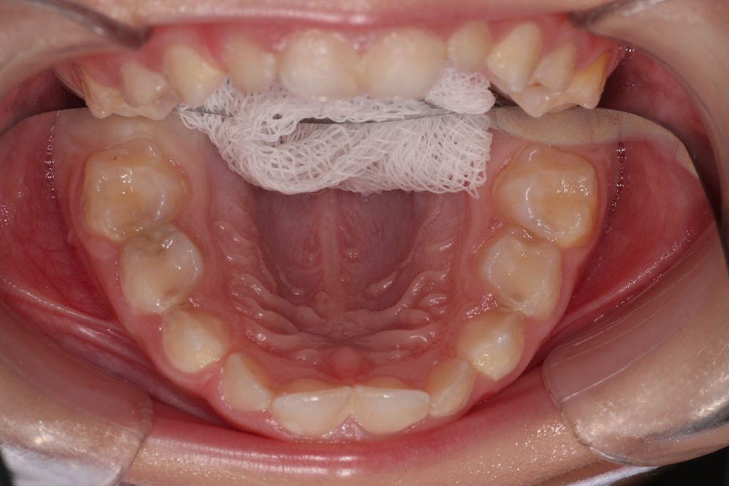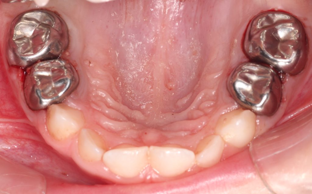 Özellikle genel anestezi altında diş tedavisi yapmayı planladığımız hastalarımızda tedavi planlarken, dişin düşmesine ne kadar süre kaldığı bizim için çok önemli bir faktör. Burada bu tatlı kız çocuğu 5 yaşında ve ikinci süt azısının düşmesine 7 yıl, birinci süt azısının düşmesine 4 yıl var. Bu süre içerisinde çocuğun dişinin, dolgu olmayan diş yüzeylerinden tekrar çürümesini istemeyiz. Çünkü böyle bir durumda, çocuğunuz tekrar koltukta işlem yaptırmayabilir, yine korkabilir ve yeniden genel anestezi altında diş tedavisine ihtiyaç duyulabilir. Böyle bir durumla karşılaşmamak için, bizim için pedodontide altın standart olan, kızlar için “simli diş” erkekler için “demir adam” dişi dediğimiz paslanmaz çelik kaplamalar imdadımıza yetişiyor. Böylelikle çocuğunuzun dişlerinin diğer yüzeylerden çürümesinin de önüne geçmiş oluyoruz. Bu vakada da böyle yaptık. Okuduğunuz için teşekkürler.